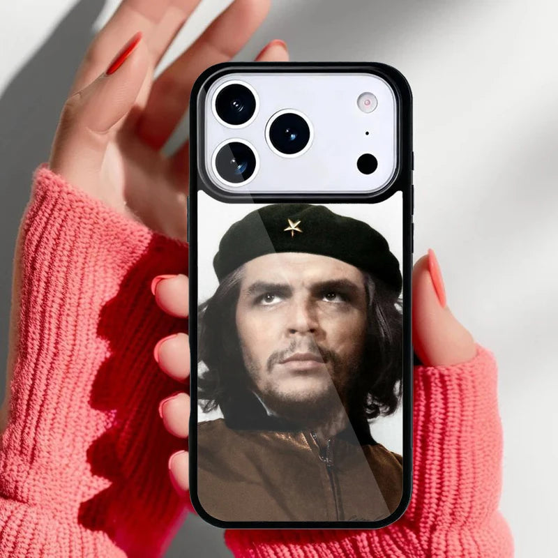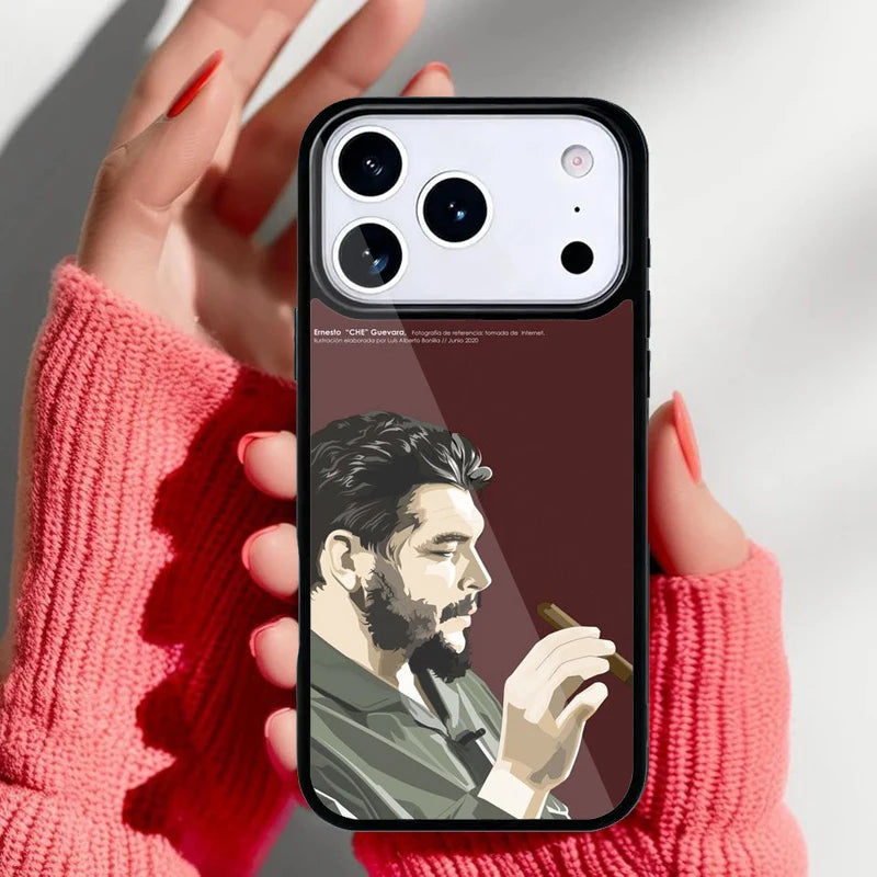 Coque souple avec illustration du Che Guevara en tons brun gradient avec texte révolutionnaire. Coque de protection stylisée pour iPhone, idéale pour afficher sa passion pour l'histoire et la révolution cubaine.