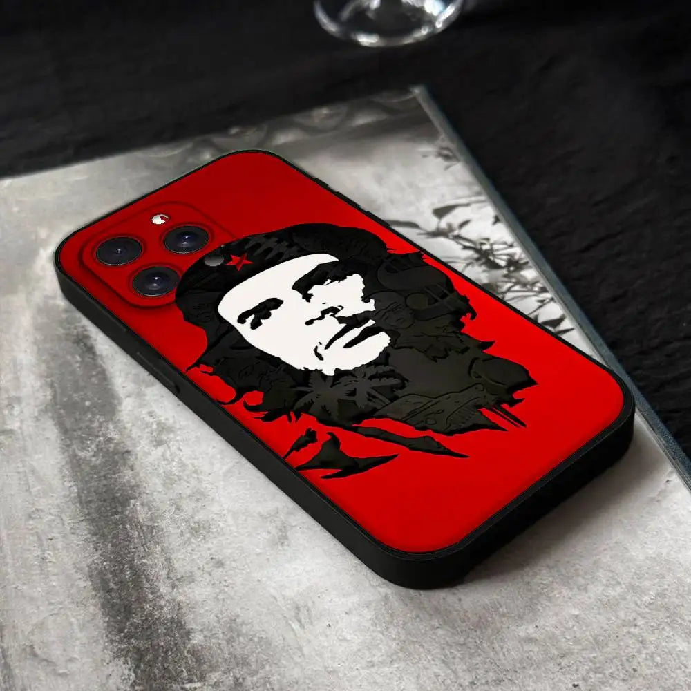 Coque matte avec silhouette classique du Che Guevara en noir et blanc avec accent rouge. Coque de protection stylisée pour iPhone, idéale pour afficher sa passion pour l'histoire et la révolution cubaine.