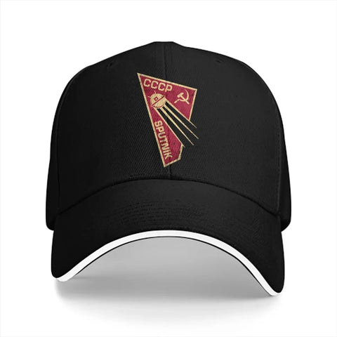 Cap with Sputnik CCCP USSR satellite design, symbol of the Soviet space program. Iconic accessory for fans of Soviet history and communist culture.