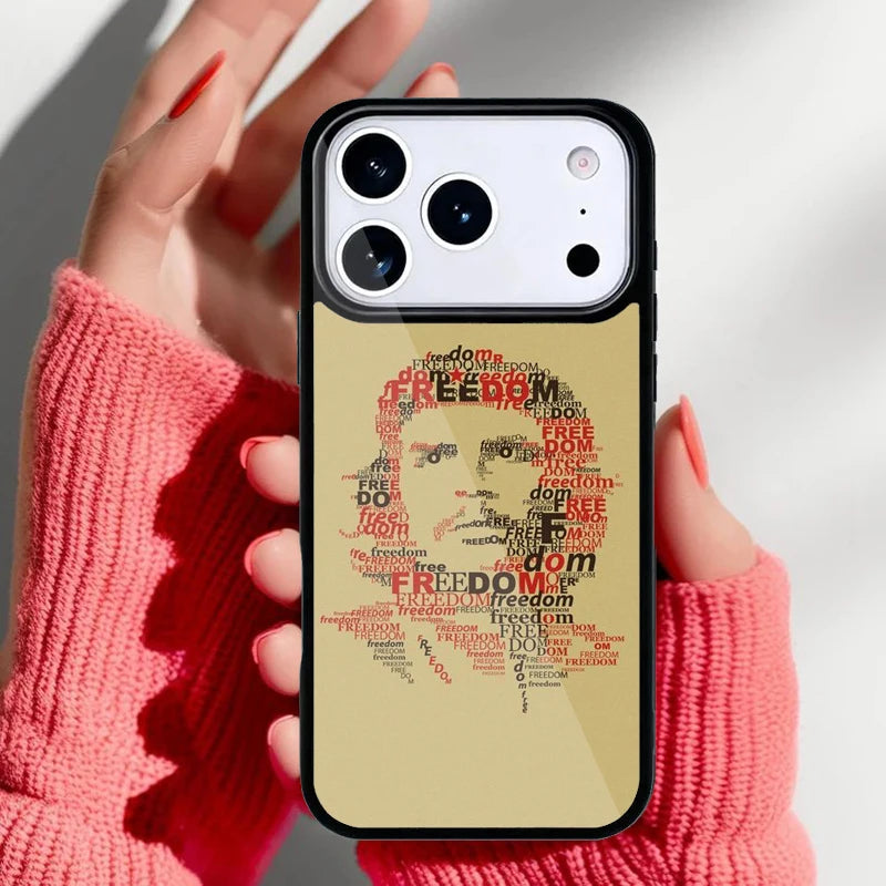 Мягкий футляр с портретом Че Гевары в окружении слов «свобода» на бежевом фоне, типографский стиль. Стилизованный защитный чехол для iPhone, идеально подходящий для демонстрации вашей страсти к истории и кубинской революции.
